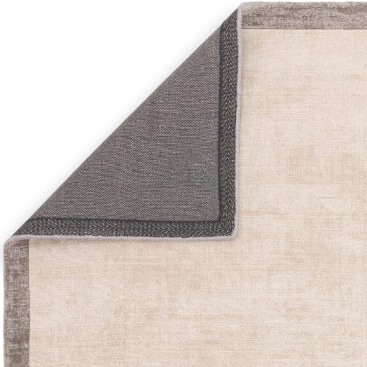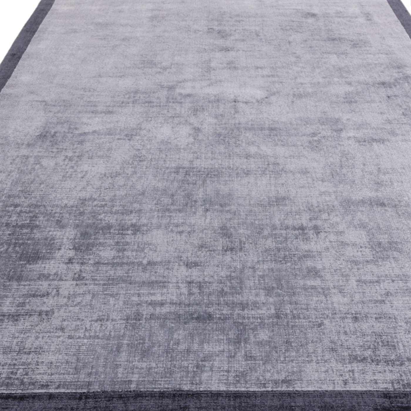 This contemporary rug collection is hand woven and finished with a tip shearing detail on viscose yarns. The collection features a two tone design flowing from darker border into a lighter center.