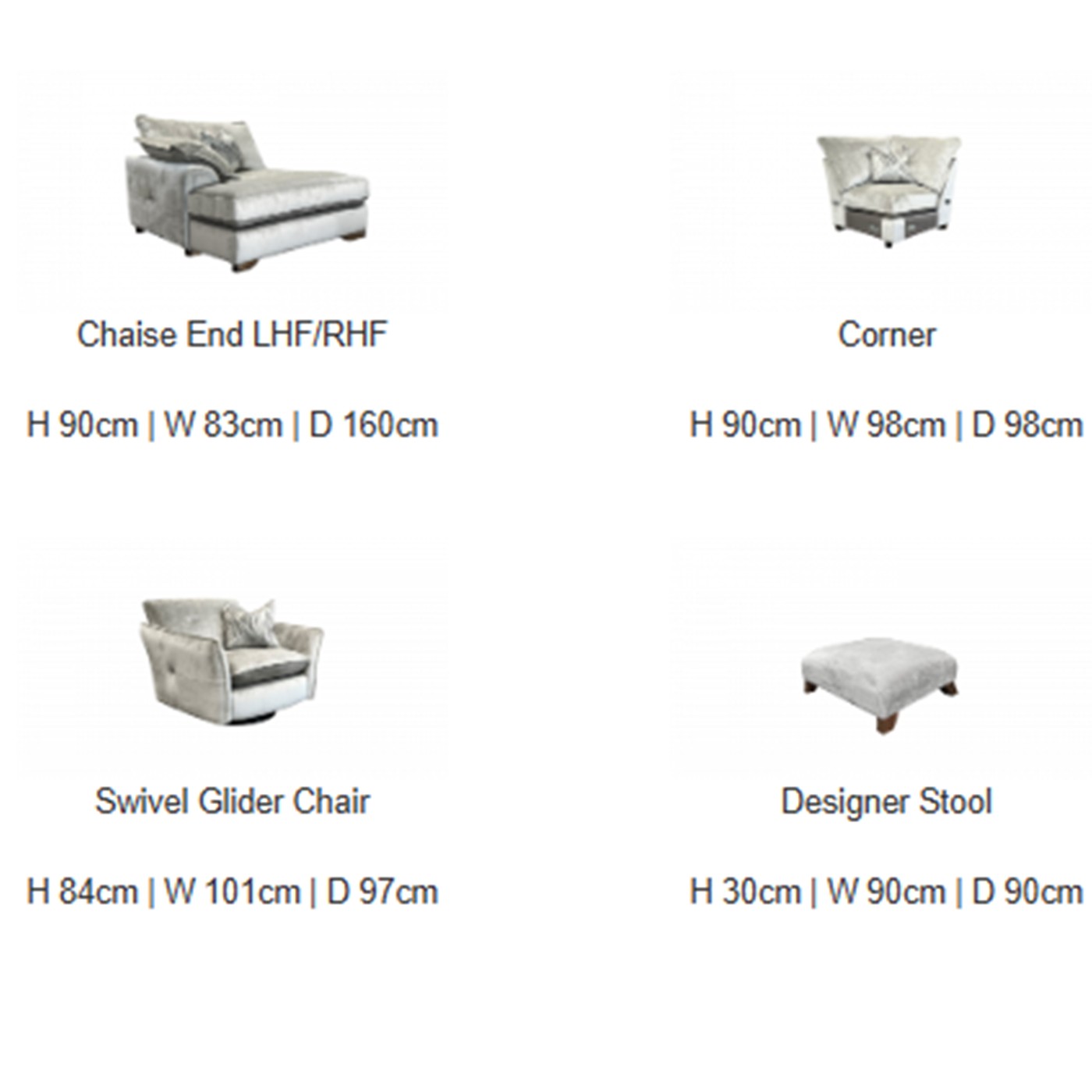 Image shows LHF 3 Seater, Corner, RHF Cuddler in Lafayette Dove with Smoke feet and accent scatters.